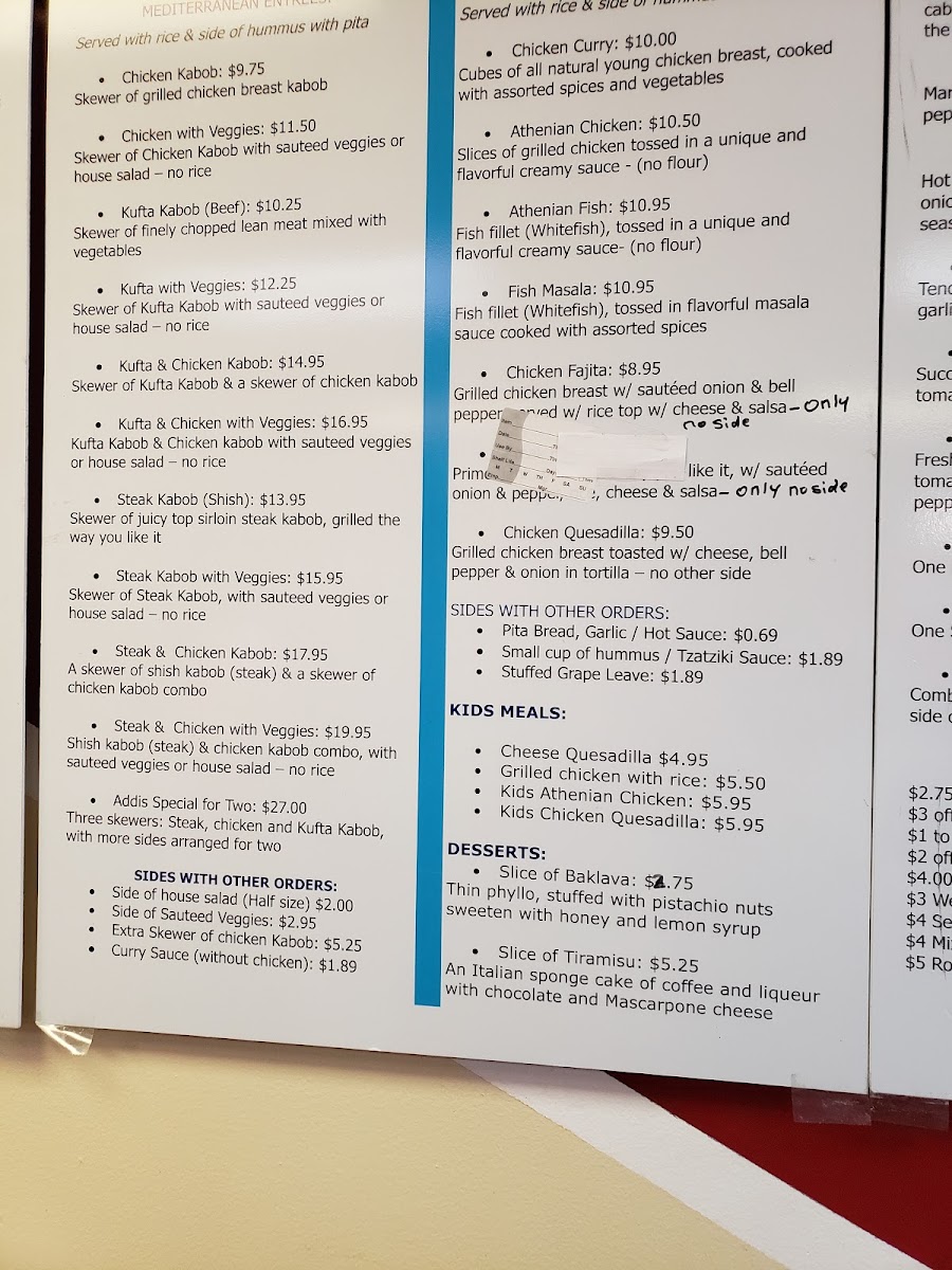 Best in town. Delicious chicken kebab made with fresh organic chicken breast, served with rice, hummus, pita bread, salad, and garlic sauce.